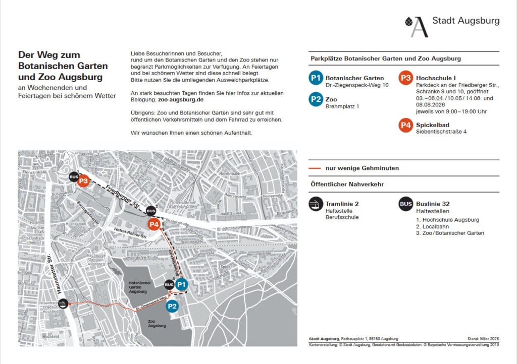 Bei schönem Wetter kann die Parkplatz-Situation rund um Botanischen Garten und Zoo angespannt sein. Der Zoo Augsburg rät zu alternativen Verkehrsmitteln: